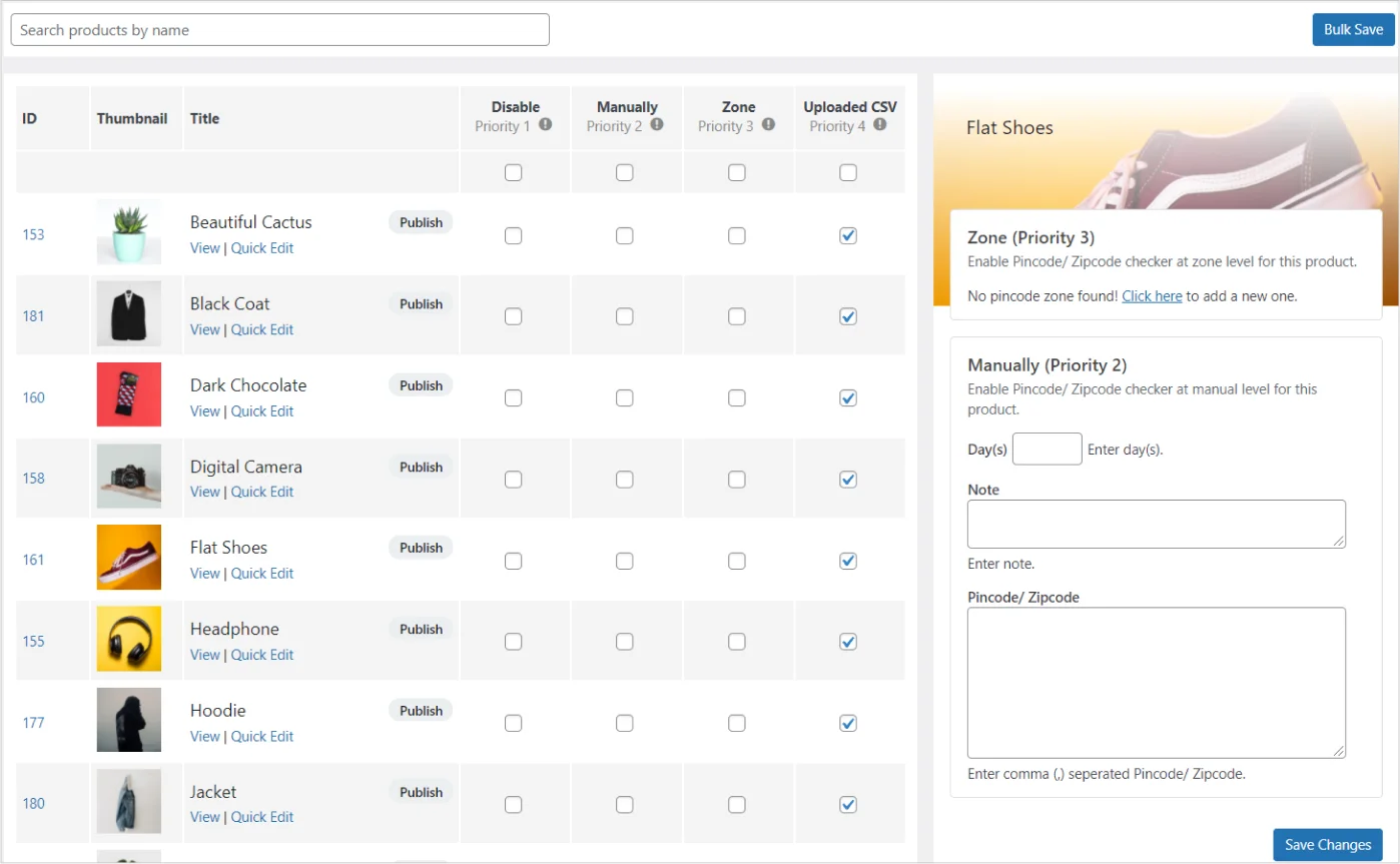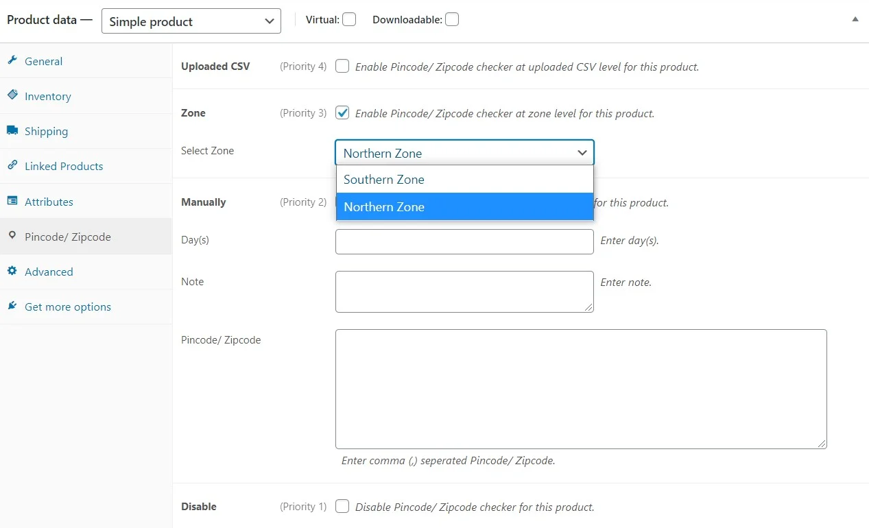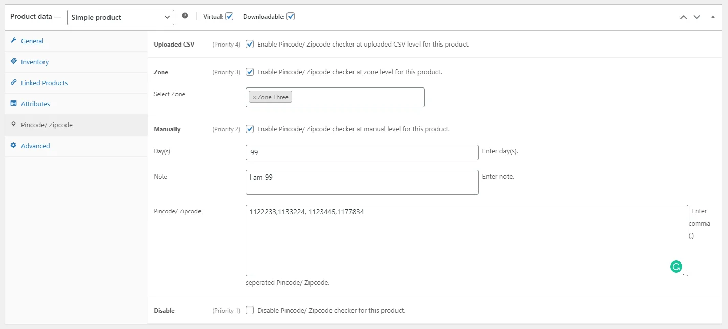 - Product Level – you can set the pincode/ zipcode individually for products.