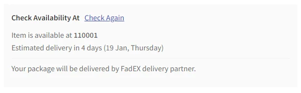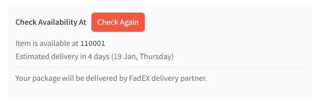 - Check Pincode/ Postal/ Zipcode availability on product page.