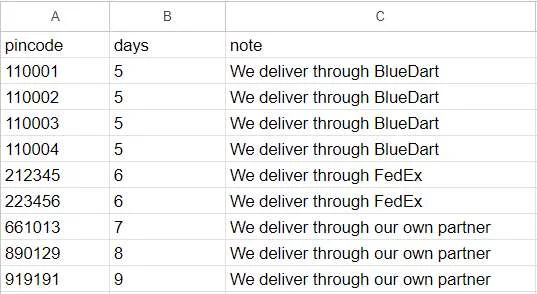 In the above example, you can see all three products are delivered to the Pincode/Zipcode/Postcode 12345678 in different periods of time because of different dispatch timings.